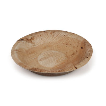 Fashioned from just two humble elements - fallen Areca Palm leaves and water, Ecodyne products successfully straddle the demands of ecological accountability, high-end design and convenience, all in one go. Over the last 9 years we have become India's largest manufacturer and exporter of Areca Palm Leaf Dinnerware. For ages, rural Indians have used fallen leaves from the indigenous areca palm tree as disposable dinnerware. The leaves are first gathered, cleaned and soaked, then heated sterilized and molded into shape. To ensure further safety the plates undergo a UV sterilization and then packed. After use, the plates can be composted, with biodegradation occurring in just six weeks. Our products have passed extensive health, safety & compostability tests. As our products are derived from a natural source, slight variations in color and thickness occur, as each leaf frond is unique. Available in an assortment of shapes and sizes to suit all your food serving needs, their beauty will lend an artisanal element to any table or buffet.